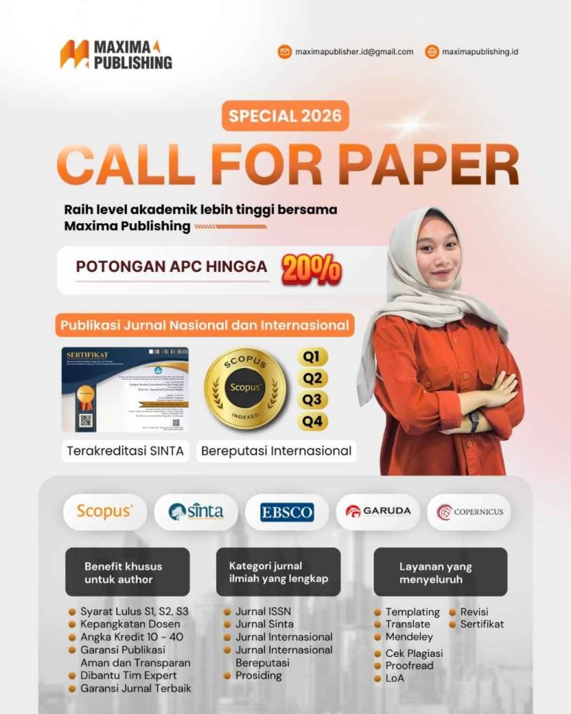 Tahun 2026 adalah momentum terbaik untuk meningkatkan kualitas dan level akademik Anda. Maxima Publishing membuka Call for Paper untuk publikasi jurnal nasional dan internasional dengan berbagai keuntungan eksklusif bagi para penulis.